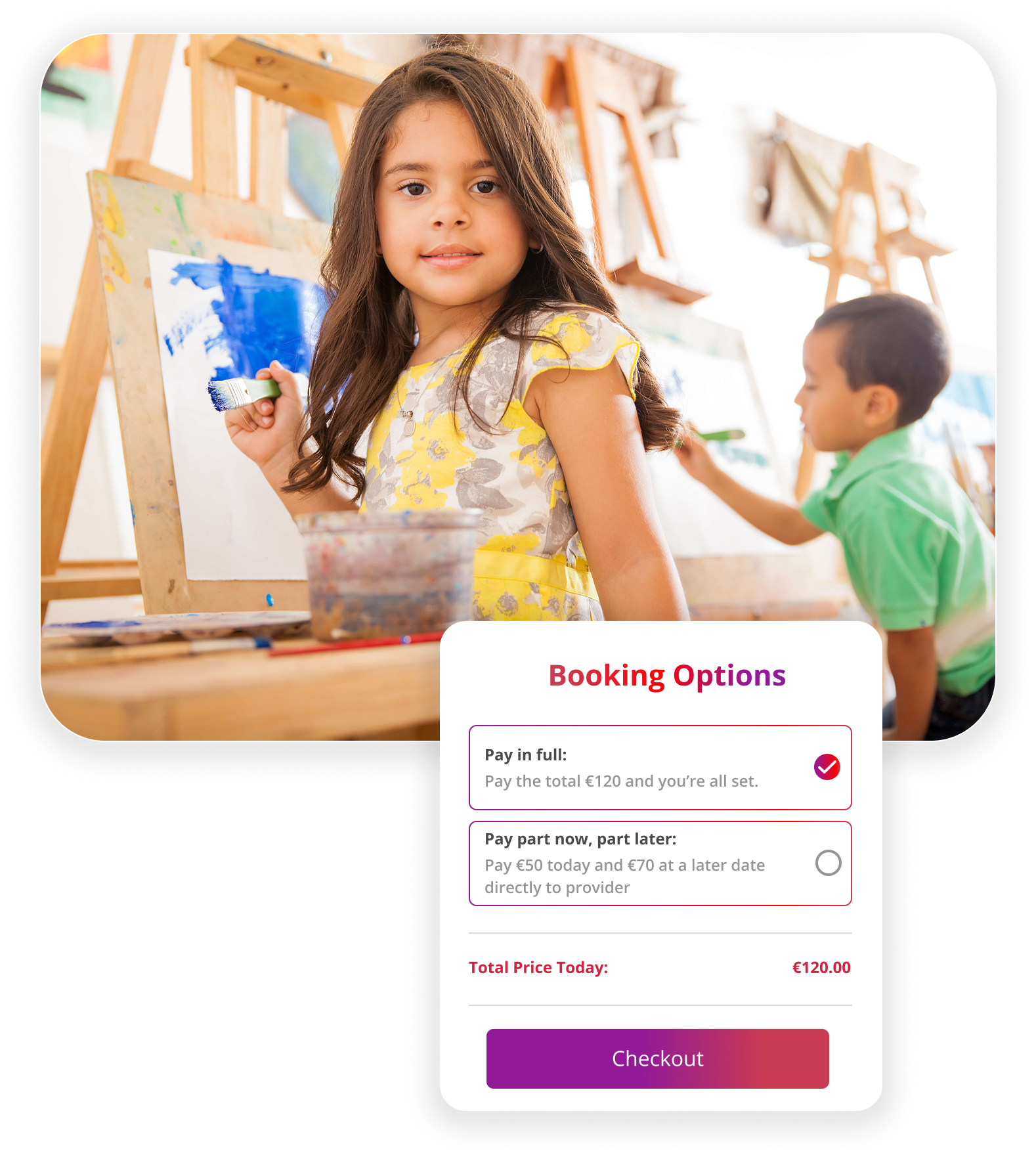 Give families a simple way to book your activities. With mobile-friendly booking, saved profiles for faster checkout, and easy updates, parents will love how effortless it is to join your activities.