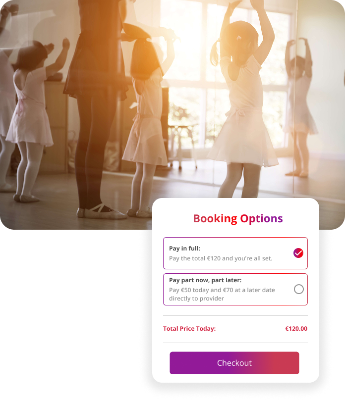 No more WhatsApps back n’ forth, manual spreadsheets, sending banking links and missed earnings. Activity Time makes it simple for customers to book their spot in your next camp, class, or workshop — whether it’s a one-off workshop, a term of training, or seasonal camps.