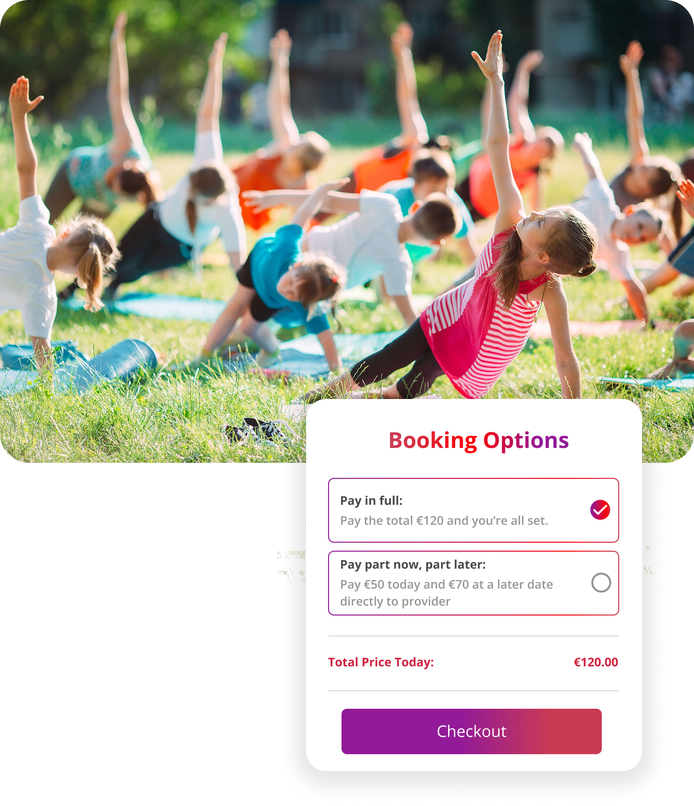 Give families a simple way to book your activities. With mobile-friendly booking, saved profiles for faster checkout, and easy updates, parents will love how effortless it is to join your activities.